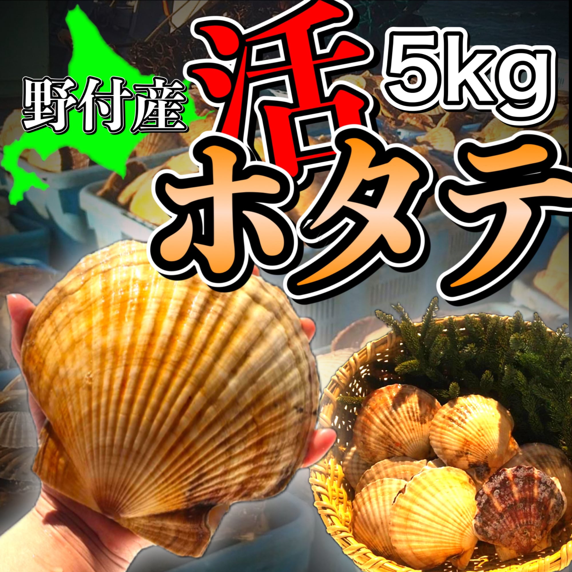 商品名:北海道野付産の特大活ホタテ 5kg詰め(15〜20枚入り)