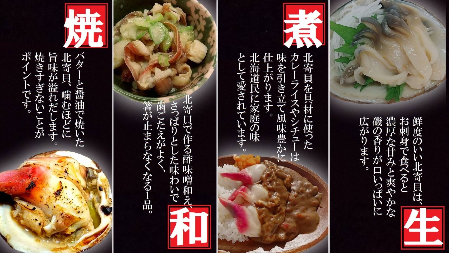お刺身やバター焼きはもちろん、カレーやフライ、ホッキご飯、ヒモの部分はサラダに入れても美味しいです。是非お好きな食べ方を探してみてください!